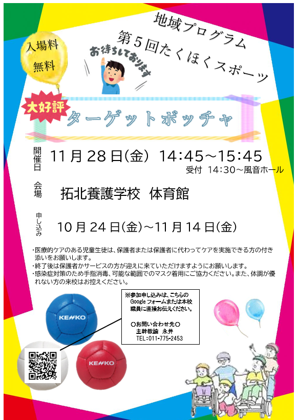 会 場:拓北養護学校体育館 (受付と集合は風音ホール)